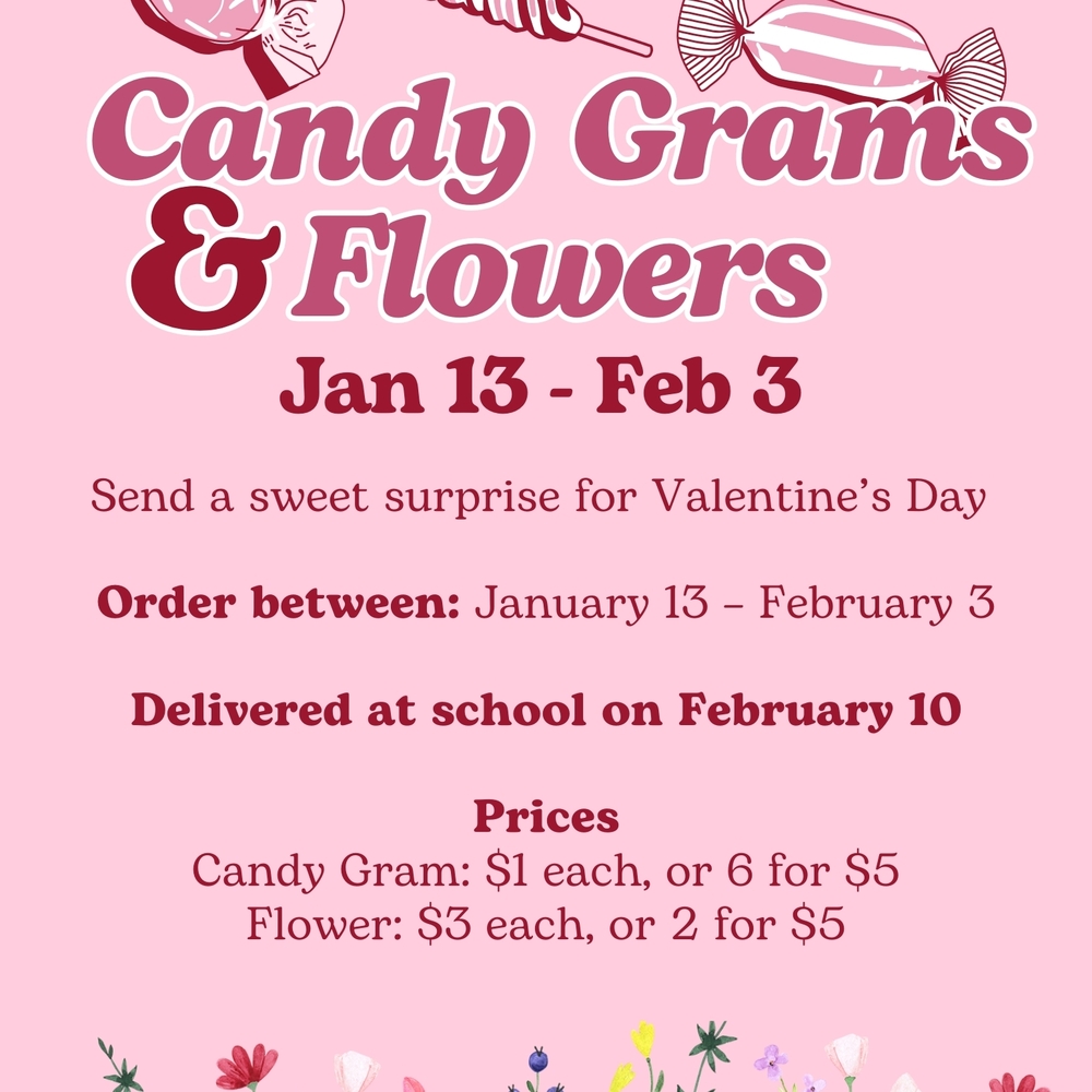 Spread a little sweetness this Valentine’s season with our Candy Grams & Flowers fundraiser. From January 13 through February 3, families and friends can purchase candy grams or flowers to send a thoughtful surprise to a student.